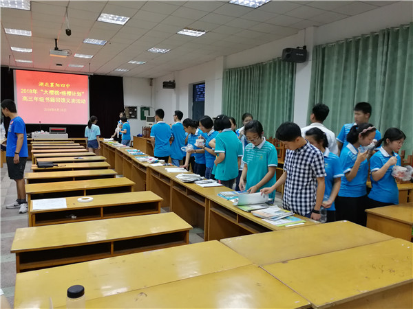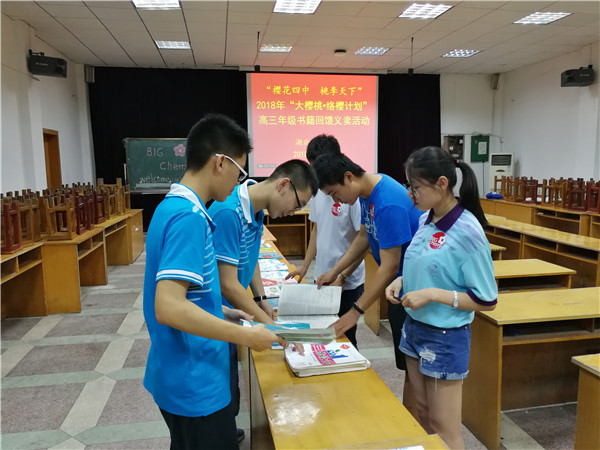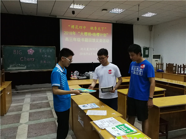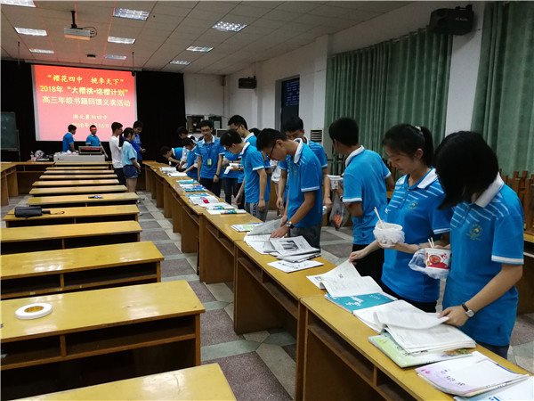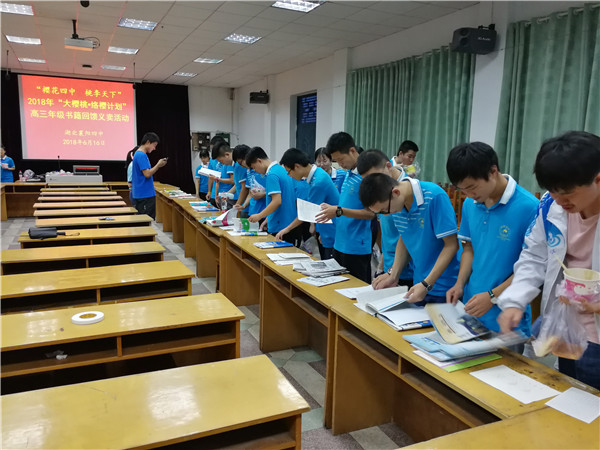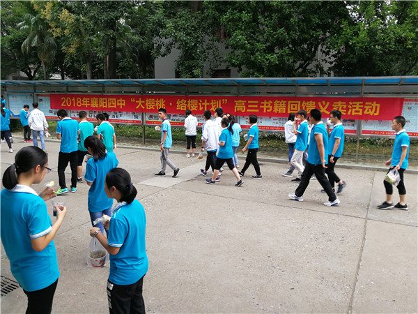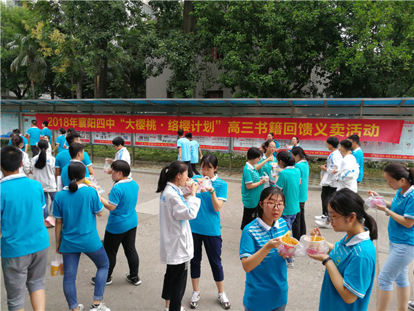 為了激發(fā)高三年級(jí)畢業(yè)生感恩四中、回饋母校之情,增強(qiáng)節(jié)儉意識(shí),踐行環(huán)保理念,提高舊書(shū)籍利用率;同時(shí),為了規(guī)范校園內(nèi)的舊書(shū)交易活動(dòng)、跳蚤市場(chǎng)等行為,經(jīng)團(tuán)委、學(xué)工處組織和倡議,襄陽(yáng)四中大櫻桃學(xué)生組織承辦,聯(lián)合舉辦2018年襄陽(yáng)四中“大櫻桃?絡(luò)櫻計(jì)劃”高三書(shū)籍回饋義賣(mài)活動(dòng)。