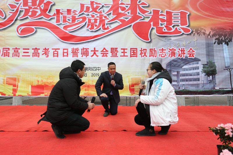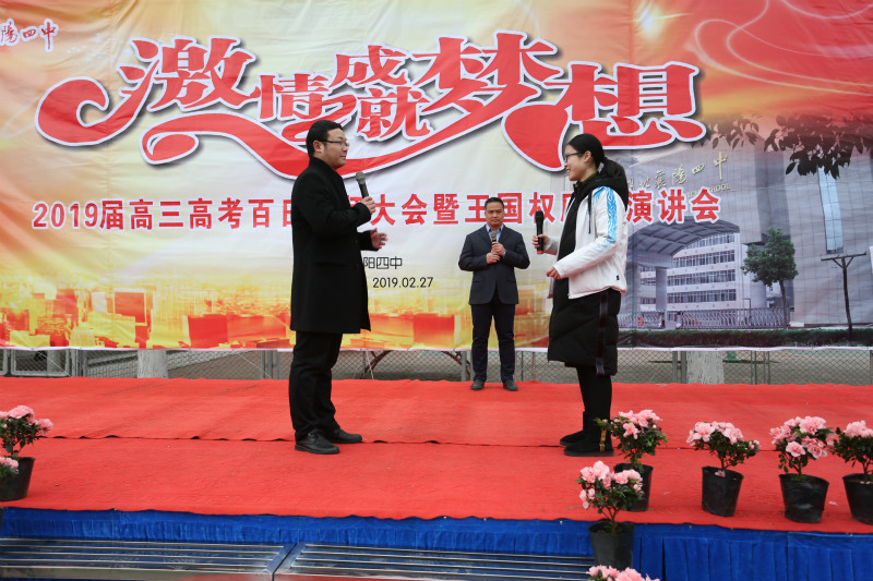 2月27日下午襄陽四中2019屆高三高考百日誓師活動暨王國權(quán)勵志演講會在我校體育場隆重舉行。校黨委領(lǐng)導(dǎo)、高三全體師生及家長參加了本次活動,校團(tuán)委書記、高三年級主任劉明國老師主持。