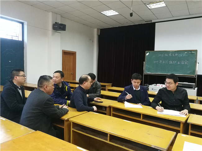 3月26日,2016級黨支部三月組織生活會在一樓多媒體教室召開,支部書記朱天斌同志主持會議,支部全體黨員參加了會議。