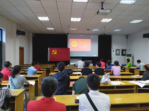 會(huì)議在全體黨員現(xiàn)場(chǎng)齊唱國(guó)歌聲中開始。2018級(jí)黨支部數(shù)學(xué)黨小組組長(zhǎng)蘇代輝同志帶領(lǐng)現(xiàn)場(chǎng)黨員重溫入黨誓詞。隨后,2018級(jí)黨支部張建波同志帶領(lǐng)現(xiàn)場(chǎng)黨員誦讀、學(xué)習(xí)了《中國(guó)共產(chǎn)黨章程》中第六章“黨的干部”部分的內(nèi)容,以提升支部教師黨員政治理論素質(zhì)。