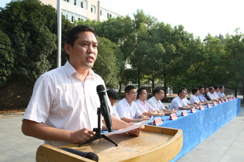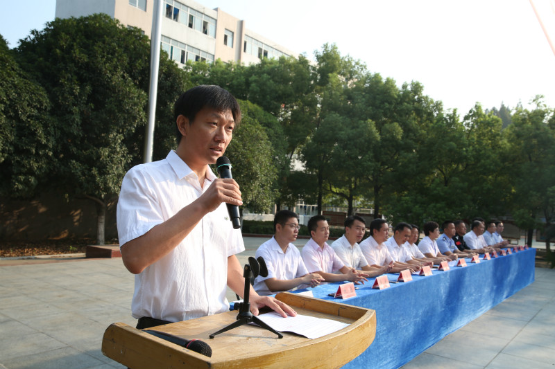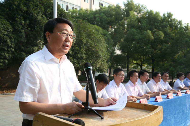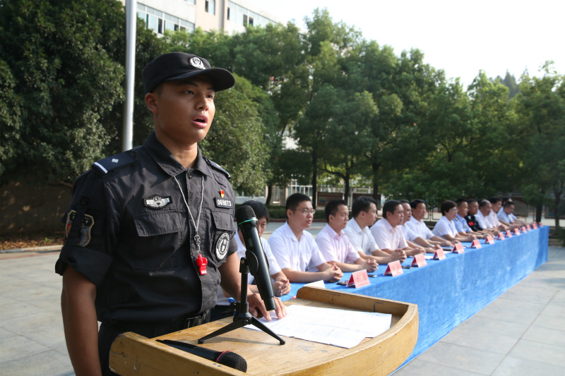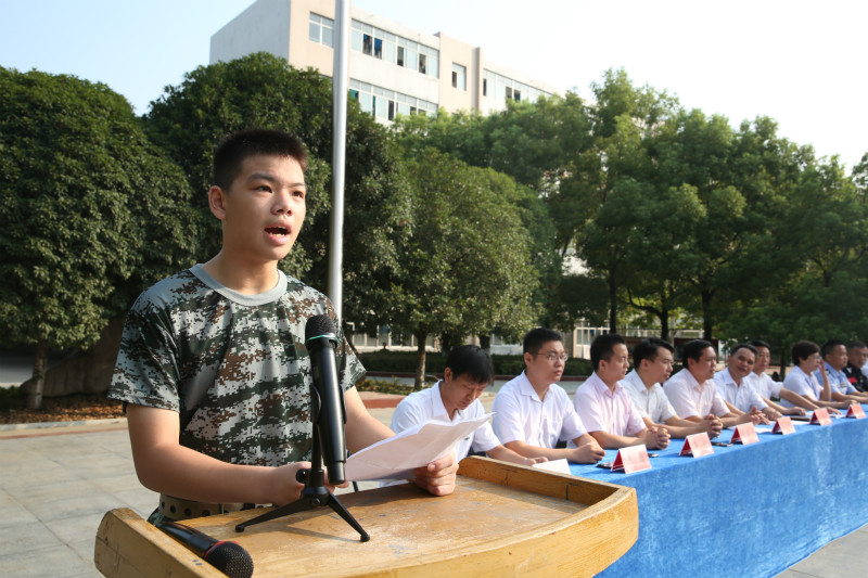 動(dòng)員大會(huì)首先由黨委委員、副校長(zhǎng)陳登江宣讀襄陽四中2019級(jí)學(xué)生軍訓(xùn)組織機(jī)構(gòu),之后黨委書記朱啟龍同志為同學(xué)們作了軍訓(xùn)動(dòng)員講話。緊接著,高一(26)班學(xué)生代表陳梓彧和教官代表張智偉分別進(jìn)行發(fā)言,他們都對(duì)圓滿完成軍訓(xùn)任務(wù)充滿信心!在學(xué)工處主任劉志明老師宣讀了襄陽四中學(xué)生軍訓(xùn)管理規(guī)定,進(jìn)一步強(qiáng)調(diào)軍訓(xùn)紀(jì)律之后,來自襄陽市公安局特警支隊(duì)副支隊(duì)長(zhǎng)曾應(yīng)剛同志最終作出了軍訓(xùn)指示。
