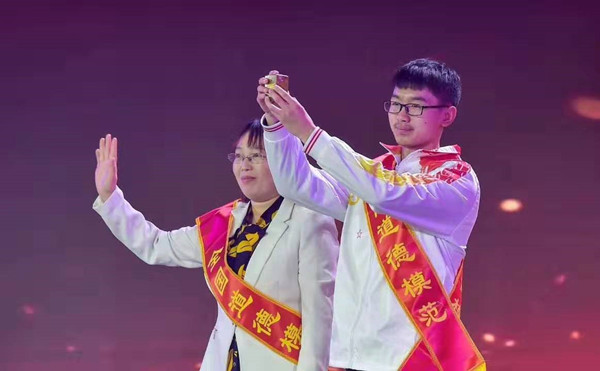 2019年12月27日晚中國好人榜發(fā)布儀式暨全國道德楷模與身邊好人現(xiàn)場交流活動在襄陽體育館舉行,我校高二學子王子豪同學作為“襄陽道德模范”應邀參加交流活動,在活動現(xiàn)場王子豪同學與全國道德模范和中國好人分享了自己的事跡,感動了在場的很多觀眾,活動中全國道德模范代表為子豪同學頒發(fā) “道德傳家寶”印章一枚,對子豪同學的孝老愛親行為予以肯定,也將激勵子豪同學將這種美德永不停歇的接力下去。