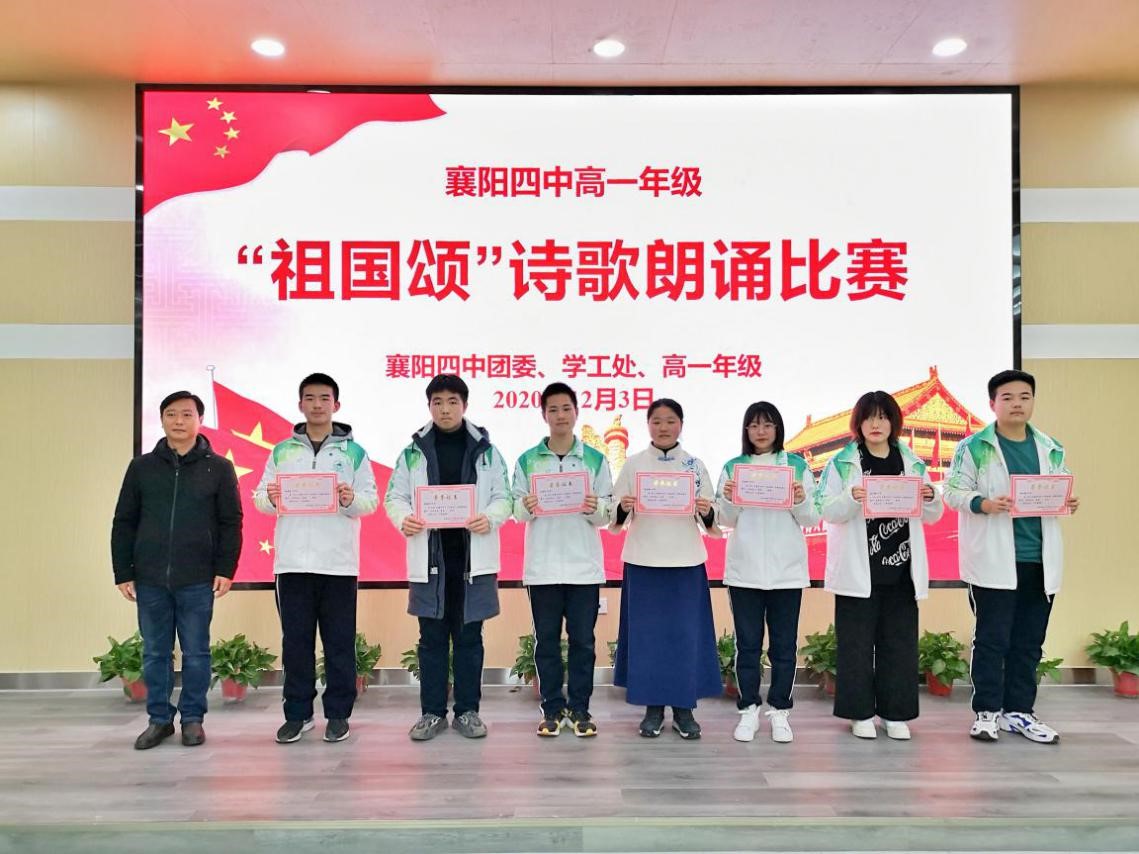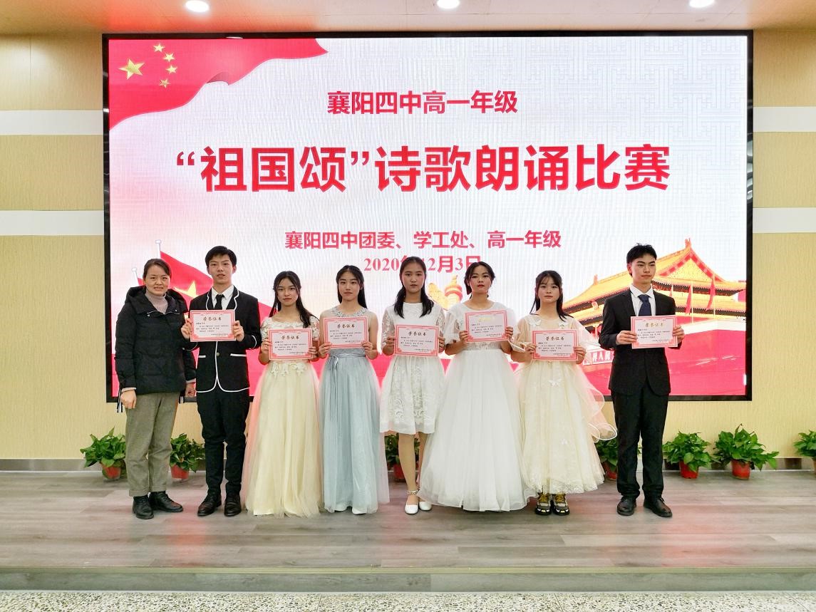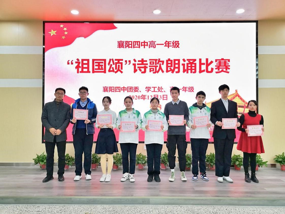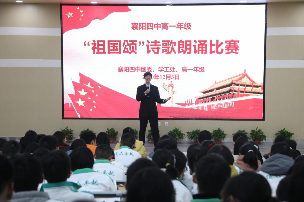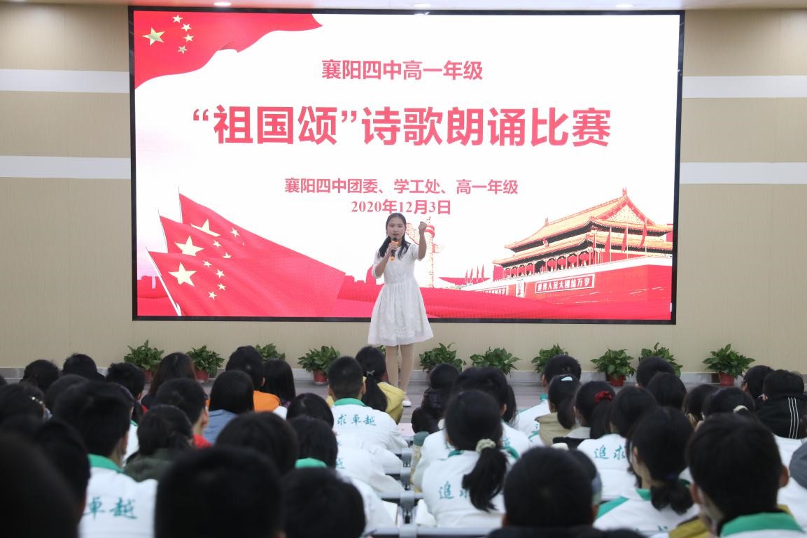 12月3日下午4:30,襄陽(yáng)四中2020年 “祖國(guó)頌”詩(shī)歌朗誦比賽決賽在高一年級(jí)階梯教室隆重舉行。本屆“祖國(guó)頌”詩(shī)歌朗誦比賽是由襄陽(yáng)四中校團(tuán)委、學(xué)工處及高一年級(jí)聯(lián)合舉辦,旨在豐富校園生活,進(jìn)一步提升四中學(xué)子的綜合素質(zhì),讓同學(xué)們?cè)趯W(xué)習(xí)中娛樂(lè),在娛樂(lè)中學(xué)習(xí),提高學(xué)生品讀和鑒賞詩(shī)歌的能力,同時(shí)陶冶性情,感悟美、創(chuàng)造美。