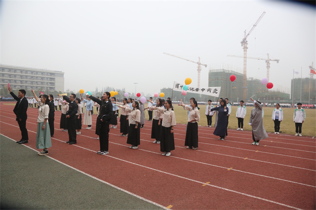 7:30,激動人心的時(shí)刻終于到來,創(chuàng)意入場式開始,那注定是一場獨(dú)出心裁、別開生面入場式。在這里,未泯的童心與絢麗的青春、陽剛與陰柔、傳統(tǒng)與現(xiàn)代融匯、碰撞。在這里,有唐裝、漢服、民國服裝和款式新穎別致的班服等,有膾炙人口的經(jīng)典兒歌和旋律勁爆的流行音樂,還有中華武術(shù)和動感十足的勁舞……同學(xué)們以自己的方式,張揚(yáng)獨(dú)特個性,綻放青春活力,凸顯班級特色文化,表達(dá)愛國進(jìn)步情懷。