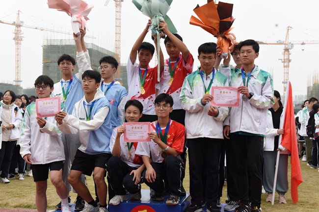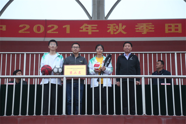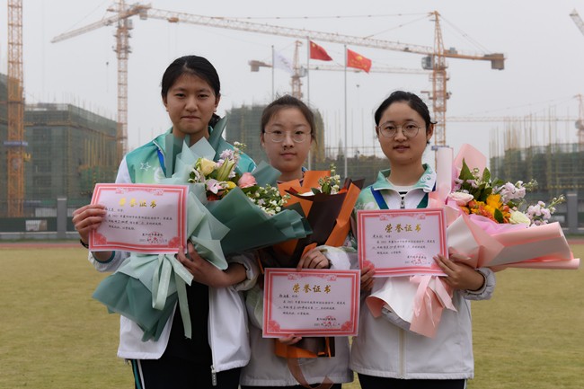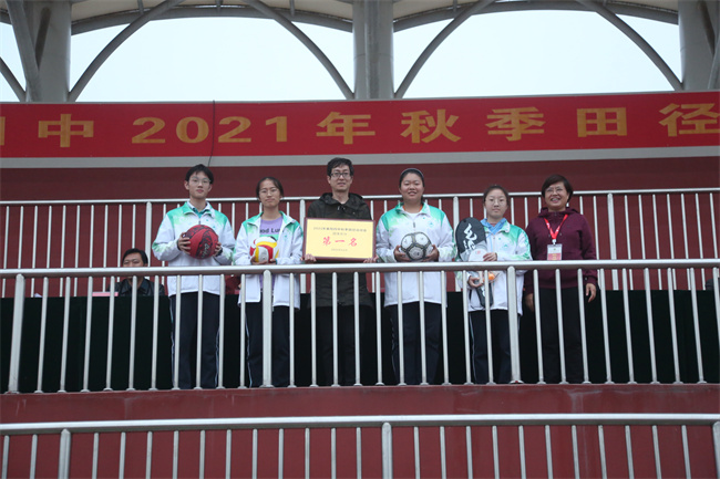 17:00,比賽項(xiàng)目全部圓滿結(jié)束。在閉幕式上,教務(wù)處主任張臣宣布了“最佳入場創(chuàng)意獎”、“最佳組織獎”、“最佳精神文明獎”、團(tuán)體總分前八名等獎項(xiàng),高二年級主任馬波、支部書記蔣華,副校長王立合,黨委書記朱啟龍,校長李靜先后為獲獎班級頒獎。