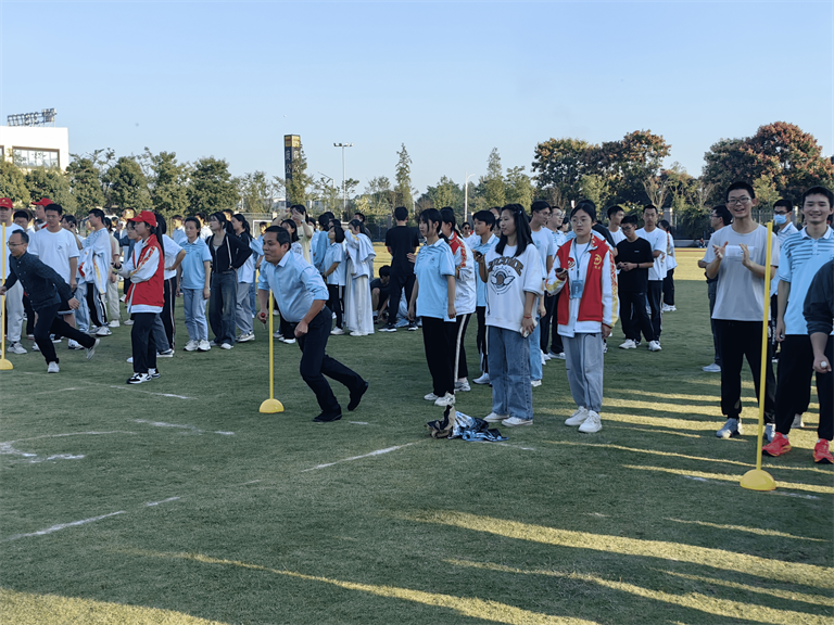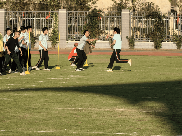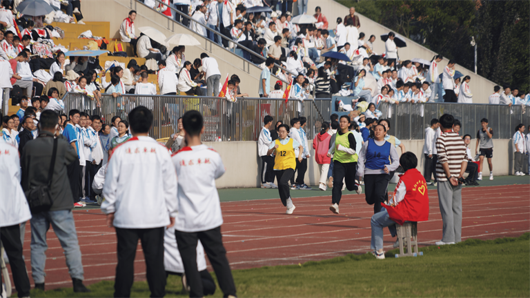 隨著最后一項比賽(男子跳高)的結(jié)束,整個會場氣氛被推向了高潮,接下來要進(jìn)行的比賽項目是50米”趣味往返跑。按照選科分成物理類和歷史類兩個組別,物理類每班有20名男生和10名女生組成,歷史類每班有10名男生和20名女生組成,如果班級人數(shù)不夠者可有班級任教老師參加;這項運動不僅增加了參加比賽的選手,讓更多人成為選手參與其中,體驗到了奔跑的快樂,放松了身心,鍛煉了體質(zhì);另外以團(tuán)體比賽的形式呈現(xiàn),也對于凝聚班級合力、加強團(tuán)隊協(xié)作具有重要的作用,比賽中大家心往一塊想,勁兒往一處使,勇于擔(dān)當(dāng),不斷向前,一往無前;相對于競技項目,50米往返跑更多的是參與,是協(xié)作,是歡笑和快樂!